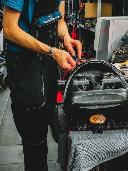 Mount the Battery Tender Plus on a stable, flat surface using the provided mounting bracket․ Ensure the charger is securely fastened to prevent movement during operation․ Keep the charger upright to maintain proper cooling and avoid liquid ingress․ Route the cables neatly, ensuring they are not pinched or damaged․ If installing in a vehicle, secure the charger away from moving parts․ Tighten all connections firmly to prevent loose wires․ Double-check the orientation of the terminals to avoid cross-connection․ Ensure the charger is easily accessible for monitoring and maintenance․ Follow the manufacturer’s mounting guidelines to guarantee safe and reliable operation․ Proper installation ensures optimal performance and longevity of the charger and battery system․